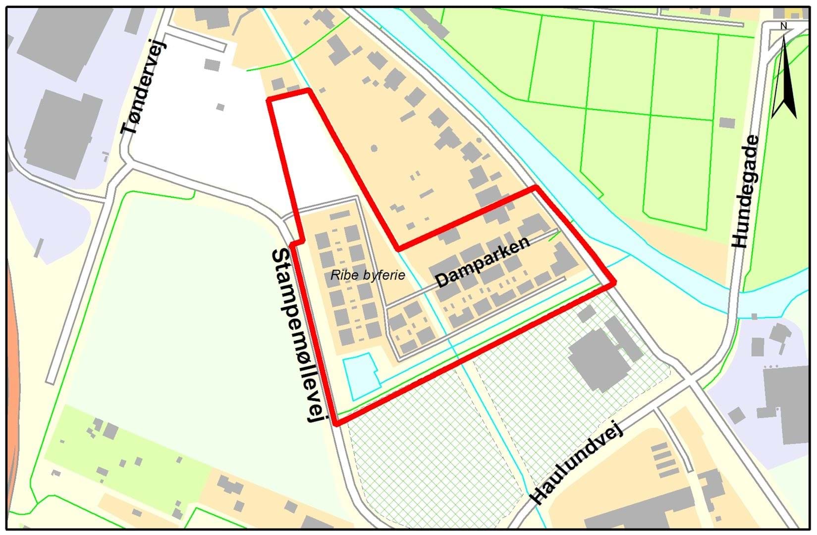 Som det ses på kortet omfatter ændringen et område ved Damparken i Ribe.