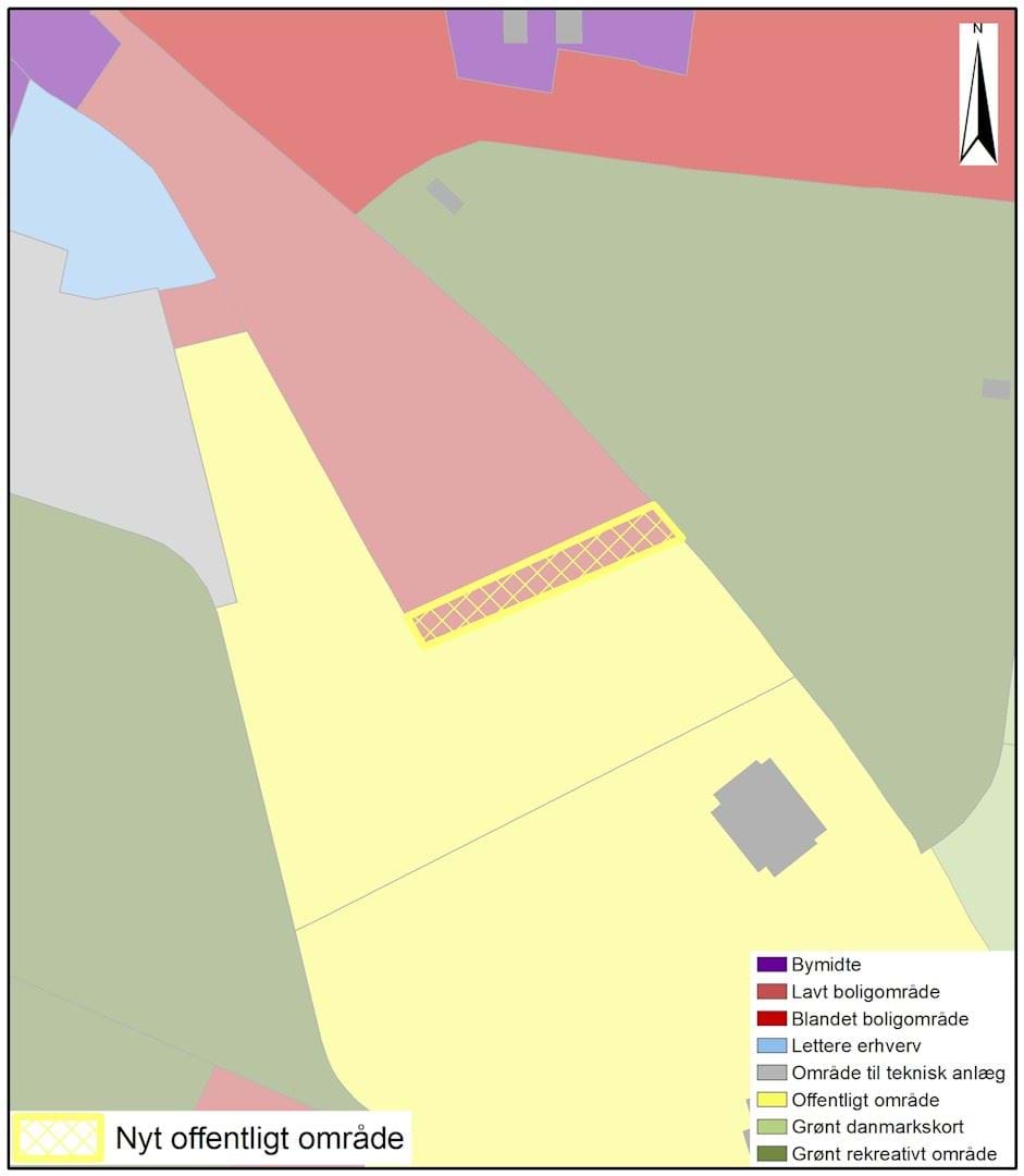 Etableringen af udvidede servicefaciliteter medfører, at et mindre område ændrer anvendelse fra lavt boligområde til offentligt område.