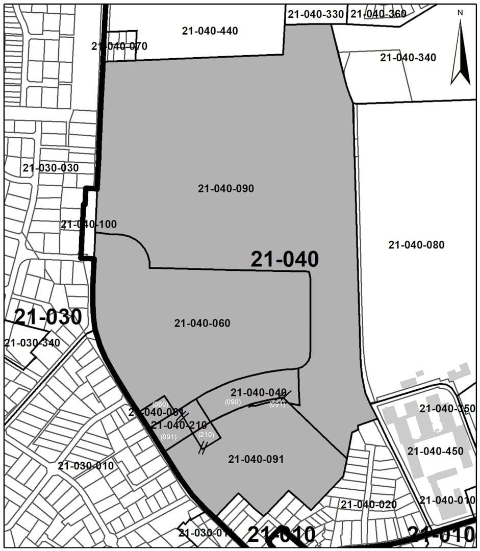 Af kortet kan ses at et Nyt enkeltområde 21-040-040 udskilles fra enkeltområde 21-040-090 og sammenlægges med en lille del af enkeltområde 21-040-091. En mindre del af enkeltområde 21-040-210 sammenlægges med enkeltområde 21-040-091. En del af enkeltområde 21-040-091 udskilles og sammenlægges med enkeltområde 21-040-210. Nyt enkeltområde 21-040-061 udskilles fra enkeltområde 21-040-060.