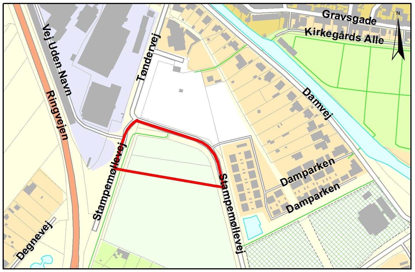 Som det ses på kortet omfatter ændringen et område ved Stampemøllevej i Ribe