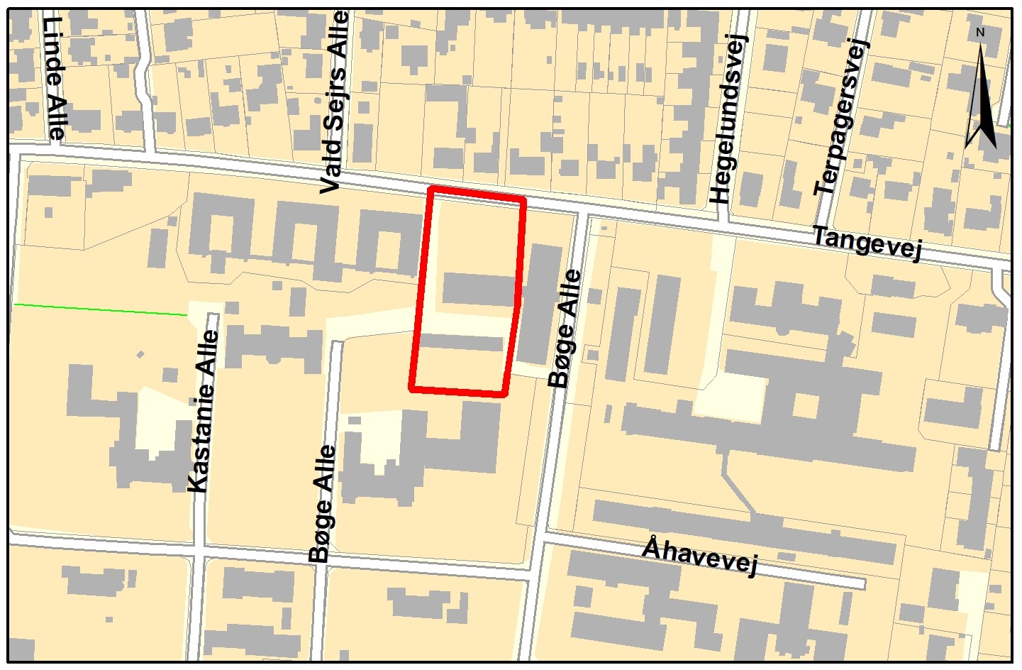 Som det ses på kortet omfatter ændringen et område ved Tangevej og Bøge Allé i Ribe.