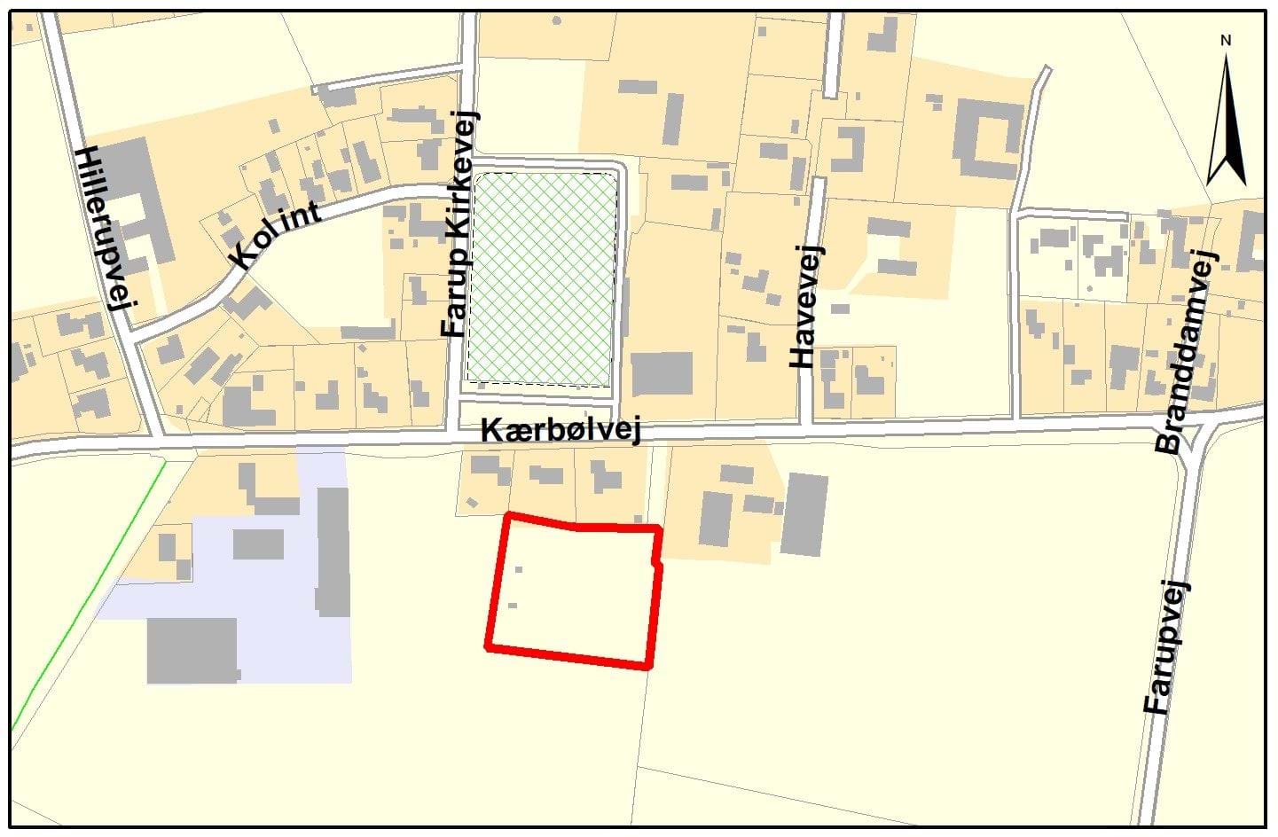 Som det ses på kortet omfatter ændringen et område syd for Kærbølvej i Farup.