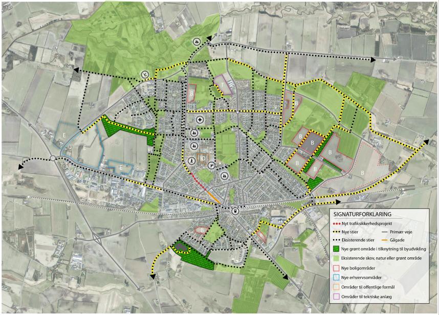 Planen for stier bygger på trafikplanen fra 2015, som fokuserede på stier i byområdet med trafiksikkerhed som hovedformål. Udviklingsplanen supplerer stierne i byområdet med et forslag om en sti langs Gabelsvej på strækningen forbi Plejecenter Solgården og frem til gågadestrækningen i Nørregade.