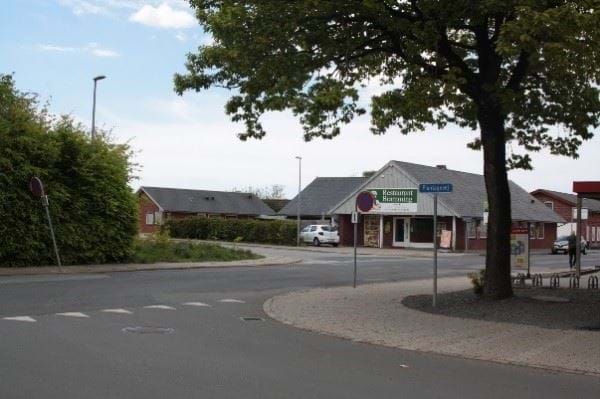 Området ved den gamle brugsbygning vil være ideelt til et stort torv med parkeringsmuligheder og plads til aktiviteter. Foto: COWI