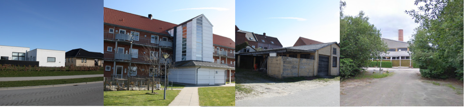 I Bramming Sydby finder man både stationsbyens tætte karakter op mod banen og parcelhuskvarterets mere spredte og grønne karakter ud mod det åbne land.