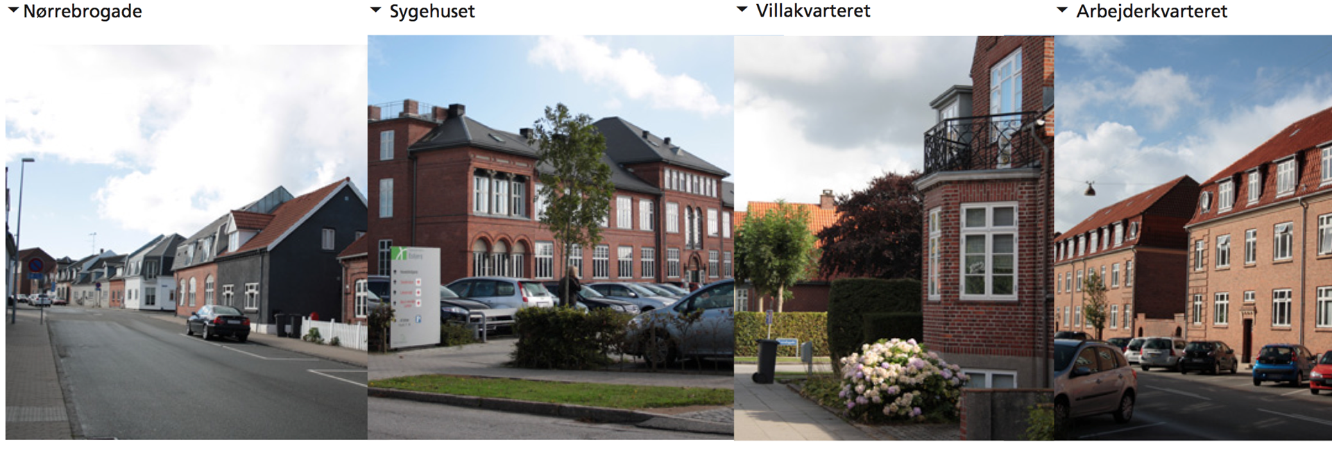 Mellem Nørrebrogade og Østergade ligger en række arbejderboliger bygget i 1920’erne, og på den anden side af hospitalet ligger villakvarteret fra samme periode. Begge områder indordner sig Esbjerg Indre bys struktur med de snorlige gader og karréstrukturen.