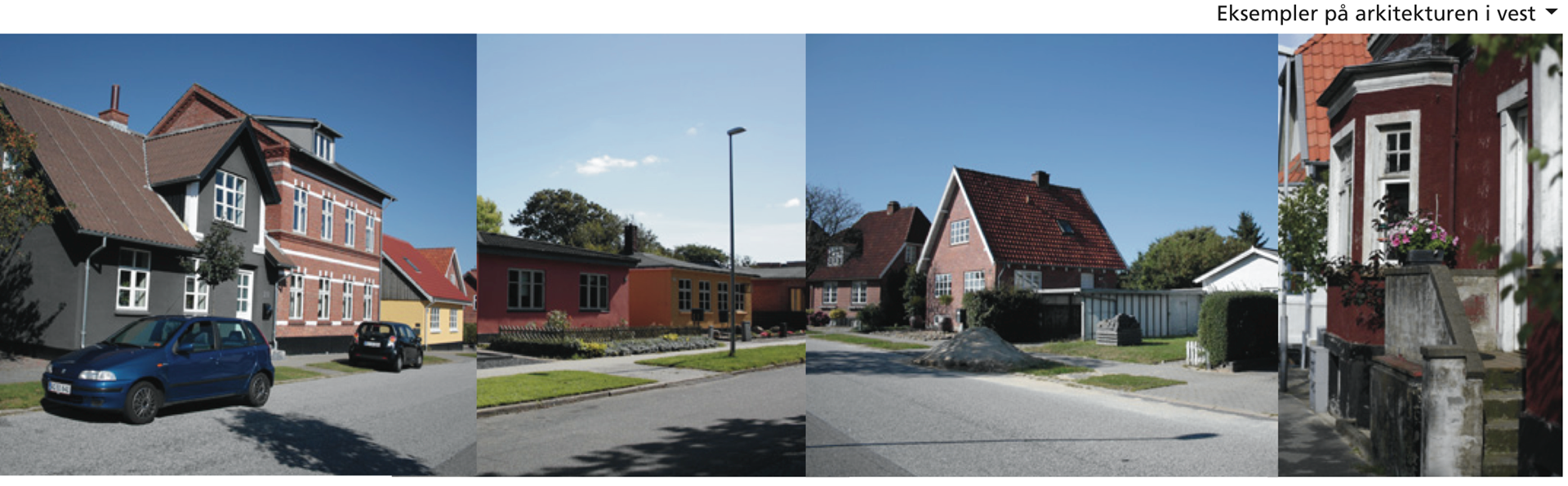 Den vestlige del af bydelen bærer præg af oprindeligt at have været planlagt som kolonihaver. Bebyggelsen er meget blandet, men den oprindelige udstykningsplan for kolonihaveparcellerne kan stadig i dag aflæses i bydelens vejstruktur. Området har desuden stadig en meget åben og grøn karakter.
