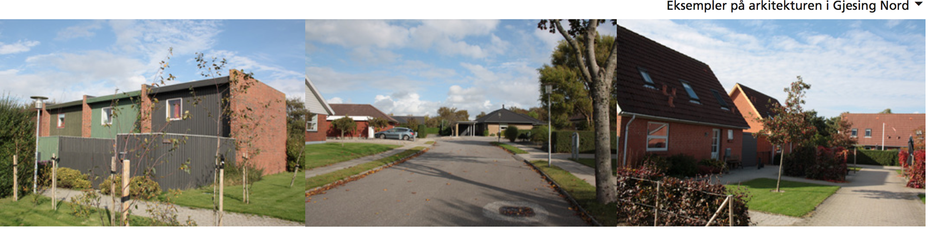 Gjesing nord består af et større parcelhuskvarter, en række tæt-lave boligbebyggelser, en skole, naturområdet samt City Nord området. De enkelte områder opfattes som enklaver vendt ind mod sig selv med undtagelse af naturområdet, der kommer i berøring med alle enklaverne og fungerer som et sammenbindende element. Hver enklave fremstår som en homogen enhed, som afrundede perler på den snor som vejen Grønlandsparken danner.