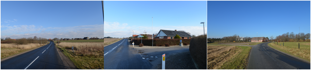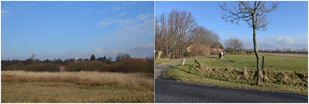 Kirken og kirkegården samt stengærdet og trærækken er et dominerende træk.