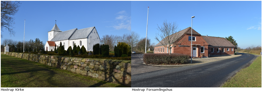 Hostrup Kirke er markant placeret i landskabet og danner centrum i landsbyen. Kirken fungerer som pejlemærke både i og udenfor Hostrup by. Tæt ved kirken ligger forsamlingshuset som også er et pejlemærke i landsbyen.