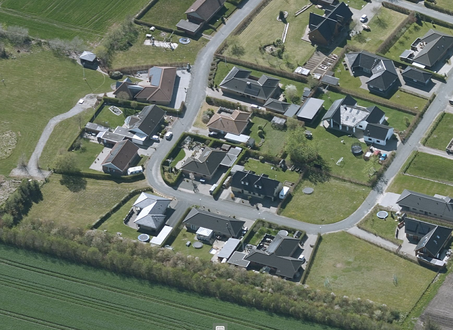 Boligerne har alle tilknyttet egen, ofte stor, have. I parcelhuskvarteret er der grønne områder med mulighed for leg og boldspil.