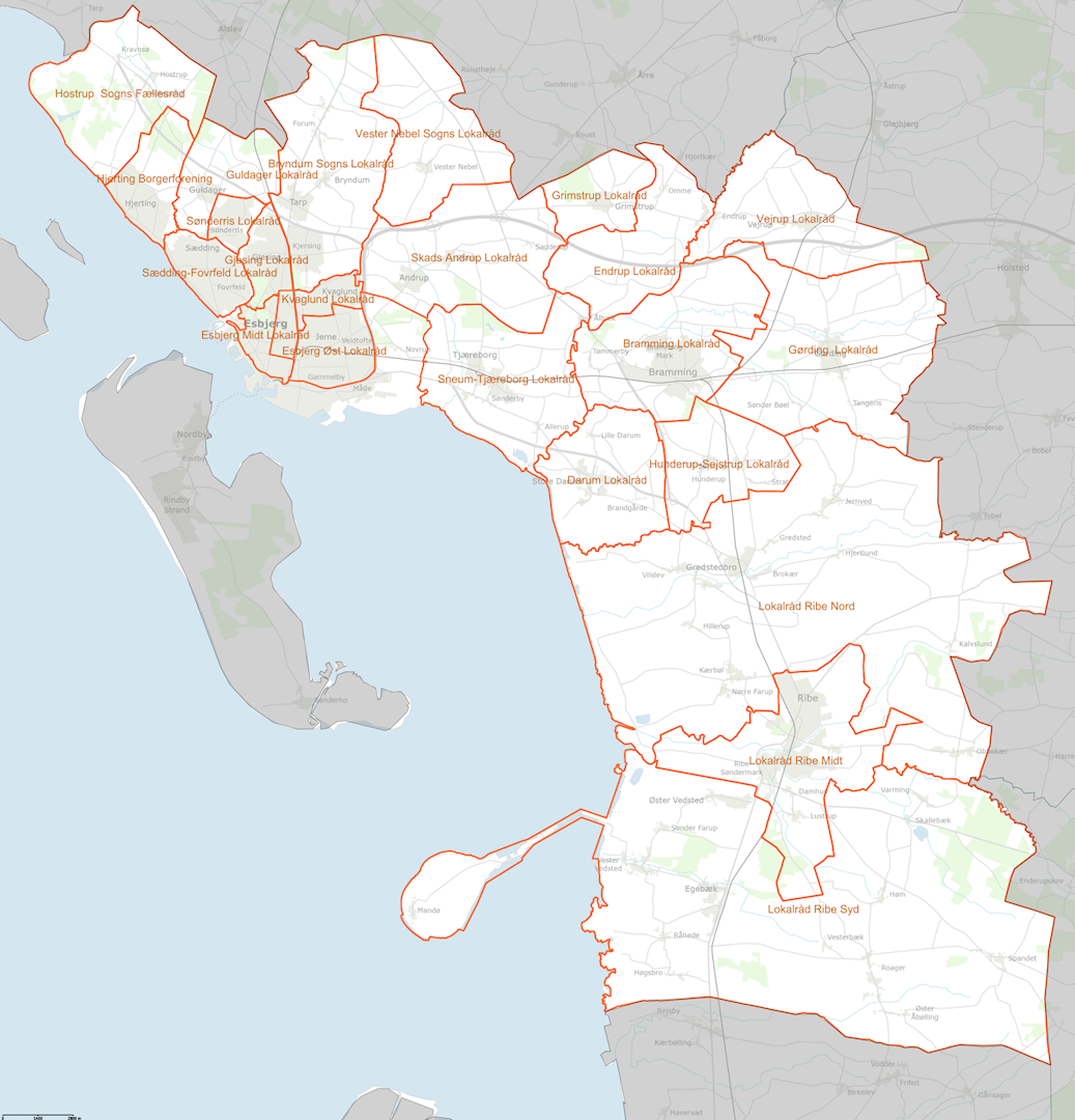 Kort over alle lokalråd i Esbjerg kommune