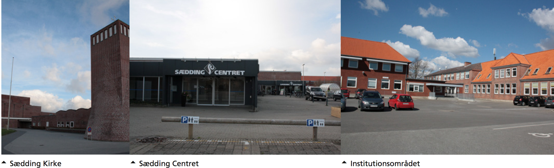 Sædding centeret med sit store areal og særligt det store parkeringsareal ud til Tarphagevej udgør et markant pejlemærke i bydelen.