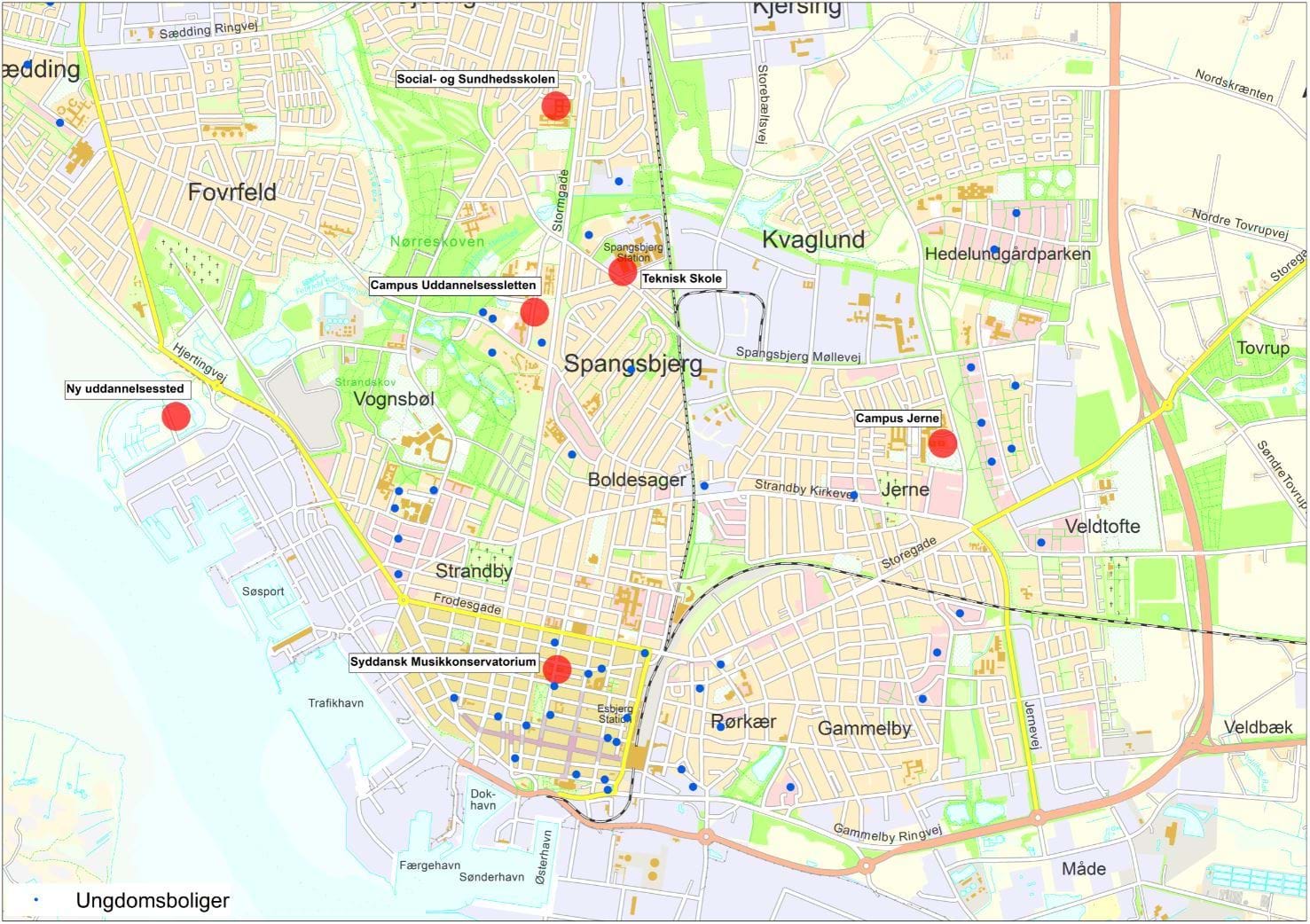 En væsentlig ramme for et godt ungeliv er boligen. Unge ønsker at bo, hvor andre unge færdes, og hvor der er gode bymæssige tilbud. Centralt placerede ungdoms- og studieboliger bidrager til fortætning af byen, bylivet og til de studerendes oplevelse af et godt studiemiljø.